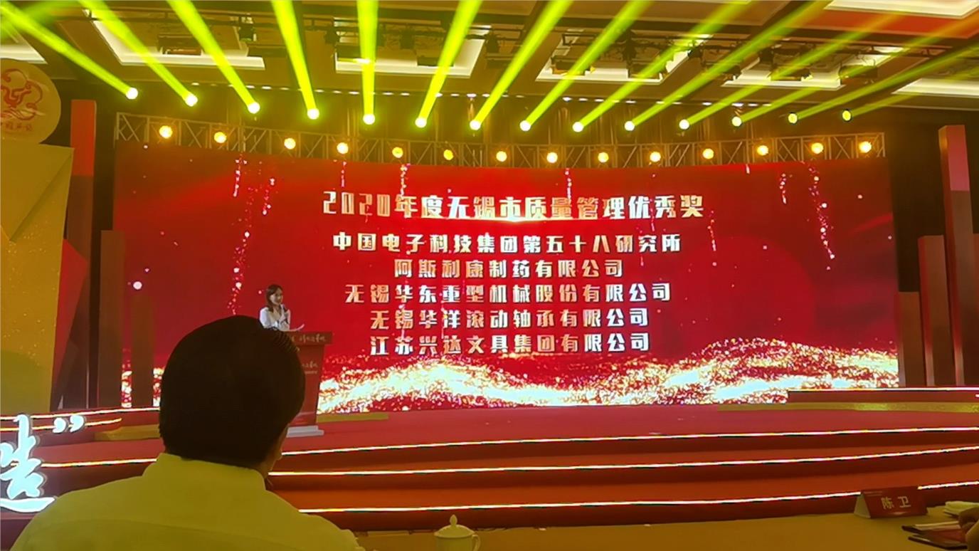 2021年6月23日下午5时,无锡市隆重举行了2020年度无锡市市长质量奖颁奖仪式。无锡宝通科技、江苏卓易信息科技、江阴海达橡胶三家企业荣获2020年度无锡市市长质量奖。无锡华洋滚动轴承有限公司、中国电子科技集团第五十八研究所、阿斯利康制药有限公司等五家企业荣获2020年度无锡市“质量管理优秀奖”。无锡市市长杜小刚、无锡市人大常委会副主任魏多、无锡市人民政府副市长高亚光分别为市长质量奖、市“质量管理优秀奖”获奖企业颁奖。